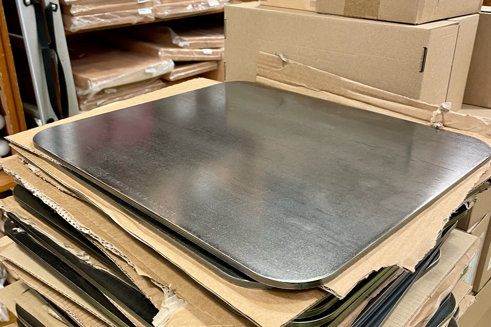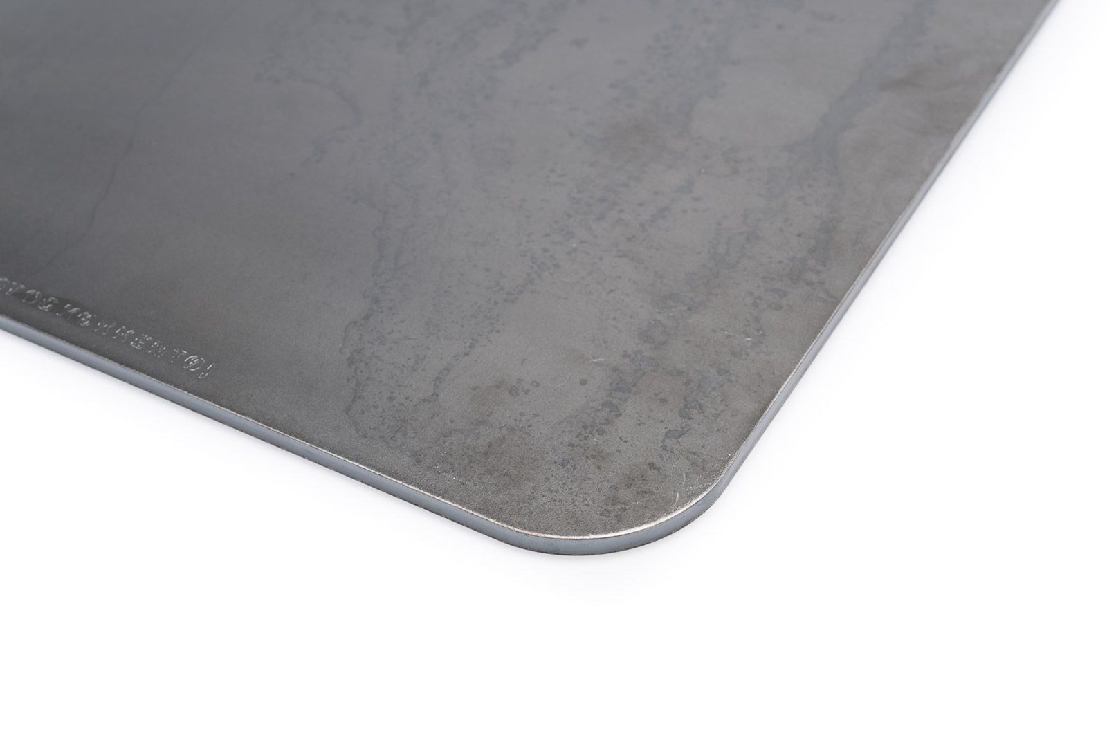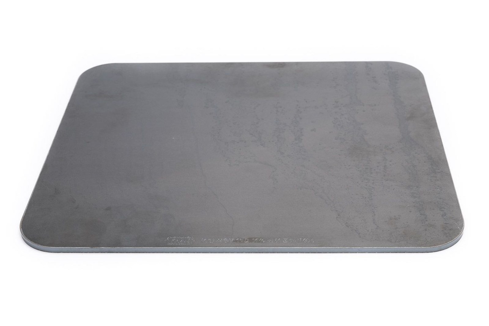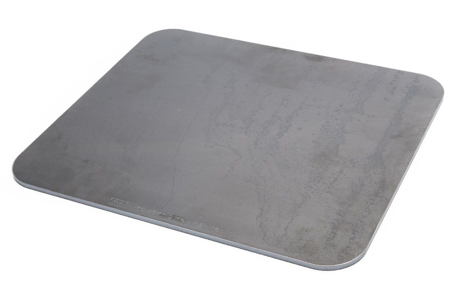 Stålets hurtige varmeafgivelse gør det særligt velegnet til pizza og tynde deje, hvor en sprød bund prioriteres. Vask evt. metalstøv fra slibning af kanter af inden første brug.