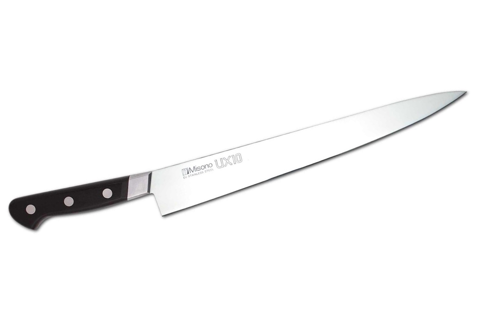 Serien UX10 fra japanske Misono er blandt de bedste knive fra denne producent. Knivbladene er lavet af rustfrit stål fra Sverige, som kan slibes særdeles skarpt, og som er let at vedligeholde. Faktisk er de tæt på at være lige så lette at slibe som knive af kulstofstål.