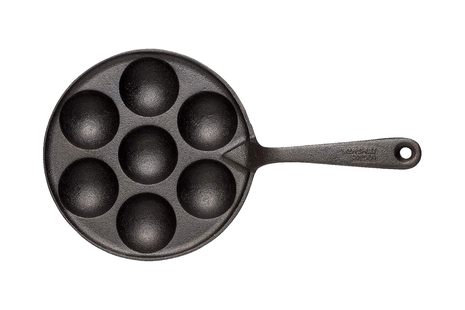 Panden laver æbleskiver med en diameter på 6 cm. Støbejernets evne til at holde en stabil temperatur gør det særligt velegnet til tilberedning af æbleskiver, der skal steges jævnt og roligt. Panden tåler brug af metalredskaber, så du kan vende æbleskiverne med en gaffel, kødnål eller et grillspyd uden bekymring.