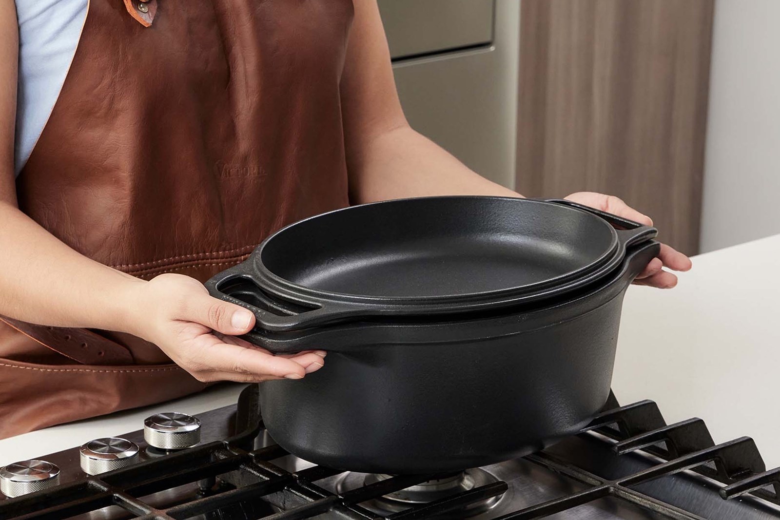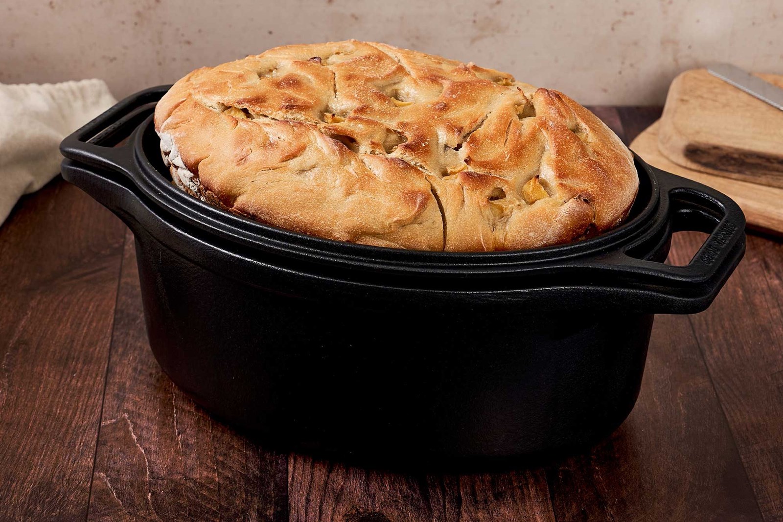Oval brødgryde på 5,7 liter, fremstillet af uemaljeret støbejern. Gryden fungerer både som bread pan til bagning i ovnen og som Dutch oven til madlavning på komfuret. Den har håndtag i begge ender, både på gryden og på låget.