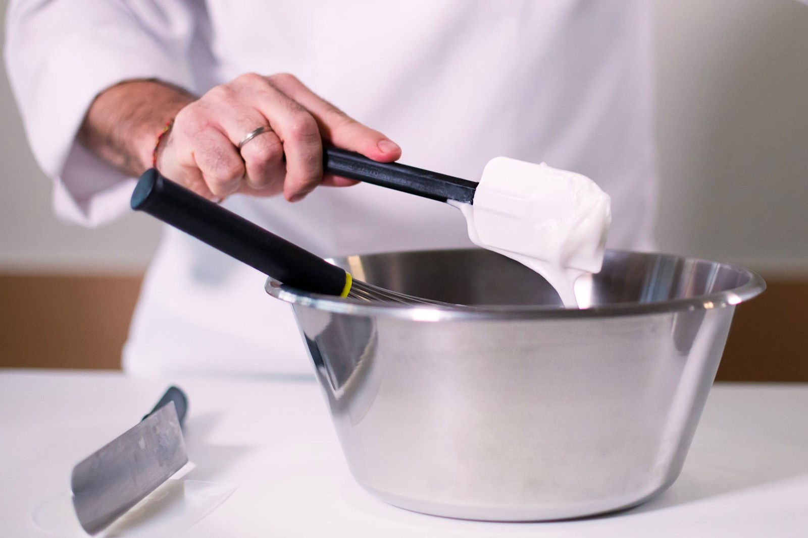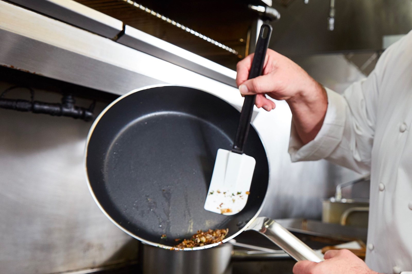 Håndtaget er fremstillet af det solide materiale exoglass, og hovedet for enden er af silikone, så dejskraberen kan bruges ved relativt høje temperaturer. Den kan f.eks. sagtens bruges på en varm stegepande.