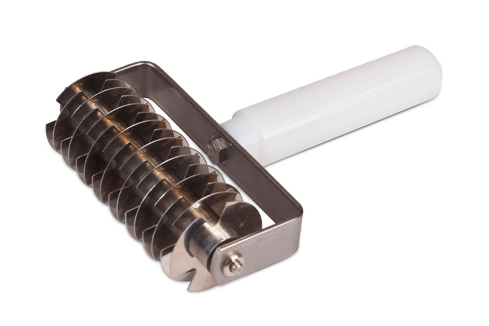 Anvendelse: Anvendes ved at føre rullen jævnt hen over udrullet dej, så der skæres parallelle snit. Når dejen efterfølgende strækkes, dannes det karakteristiske fletværk. Redskabet er egnet til dejtyper, der kan strækkes.
