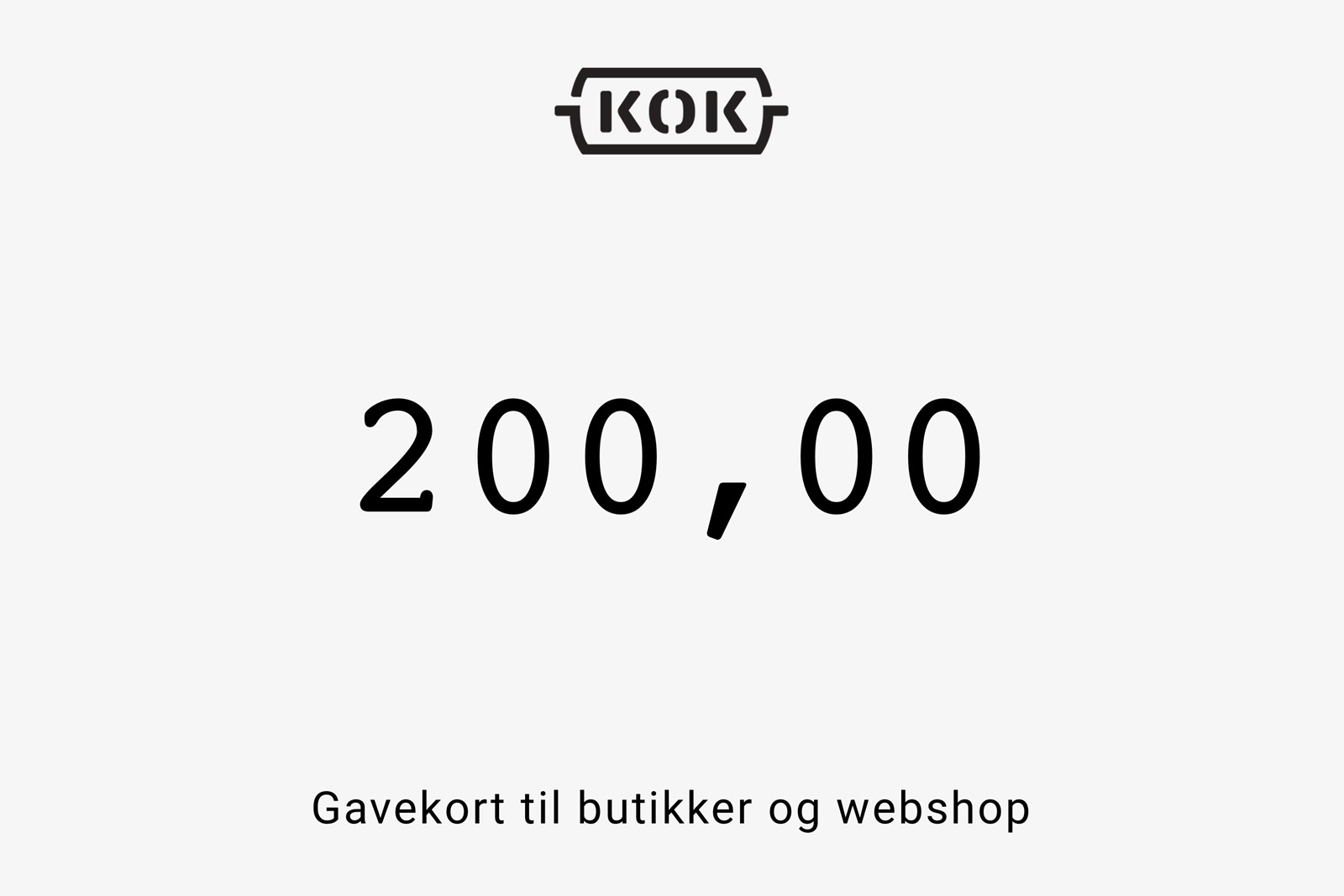 Gavekort på 200 kr. til Kunst og Køkkentøj. Gyldigt i fem år – og kan bruges i butik og webshop.