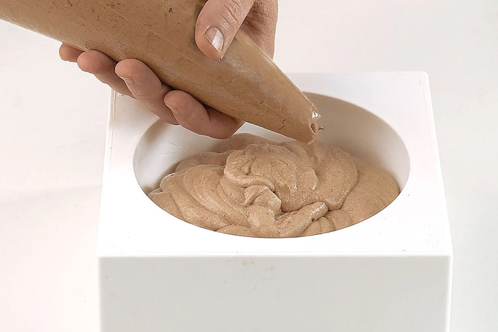 Da silikoneformen er blød, fraråder vi at støbe chokolade i den. Størknet chokolade kan let knække, og lufthuller kan ikke bankes ud af massen. Brug i stedet en rigtig chokoladeform i hård plast.