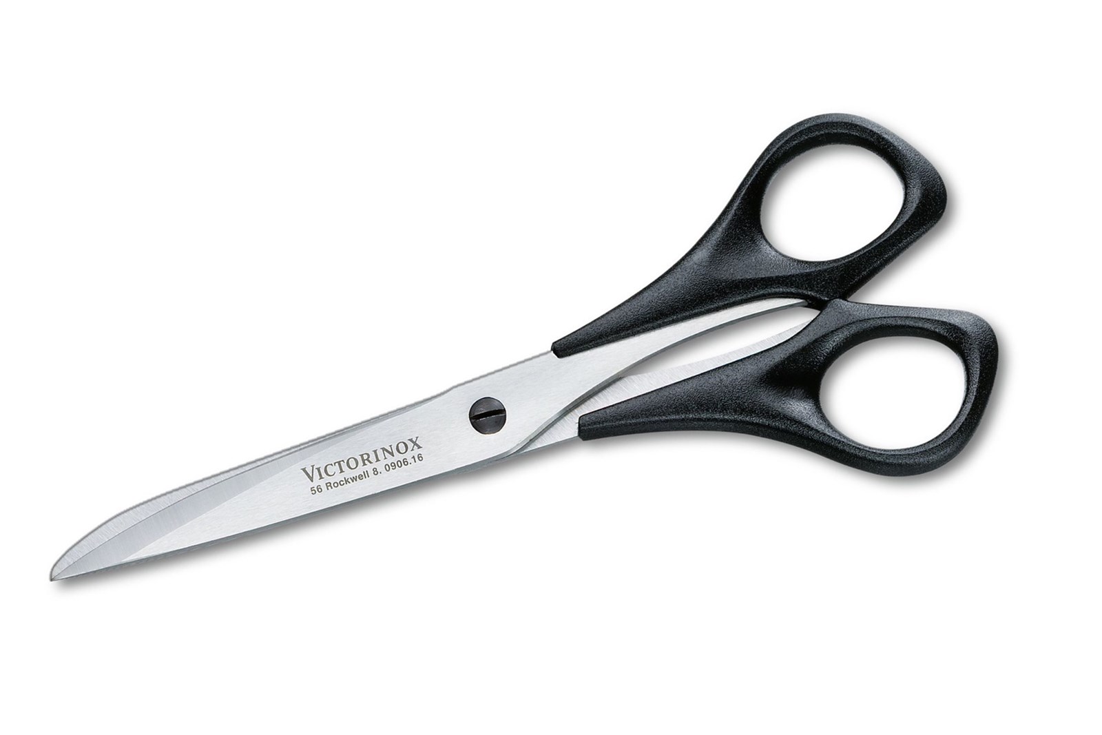 Lille køkkensaks på 16 cm, med skær i rustfrit stål og håndtag i sort plast, der klarer de fleste mindre opgaver i køkkenet. Saksen er samlet med en skrue, så den nemt kan strammes ved brug – og skilles ad, hvis den skal slibes.