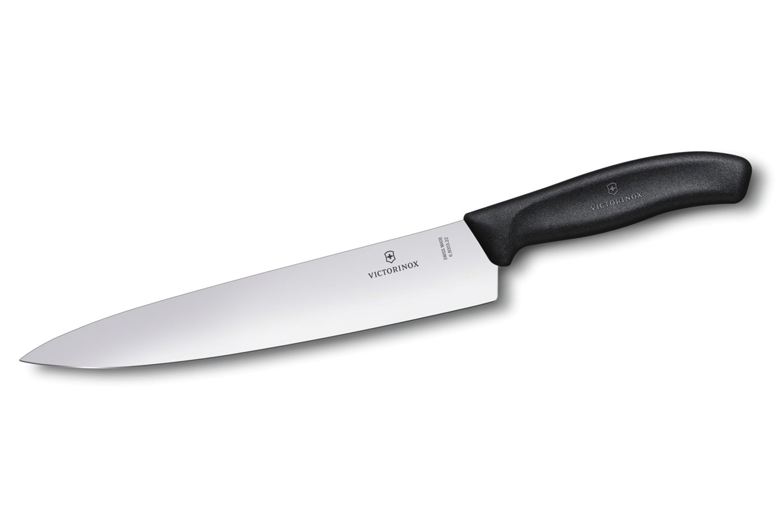 Alsidig og let kokkekniv fra Victorinox med 22 cm langt knivblad i rustfrit stål og skæfte af sort Fibrox. Kniven er velegnet til de fleste skæreopgaver i køkkenet.