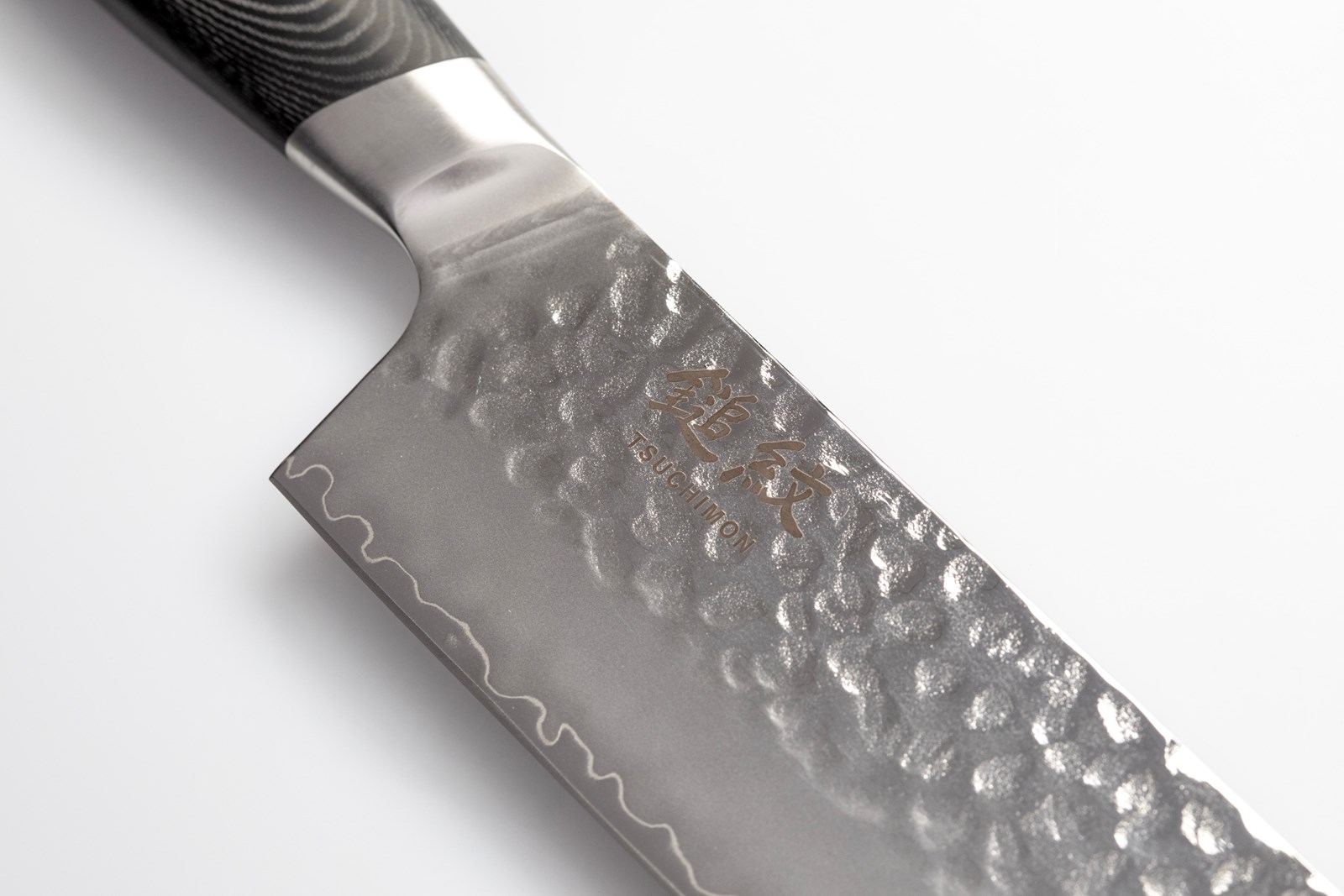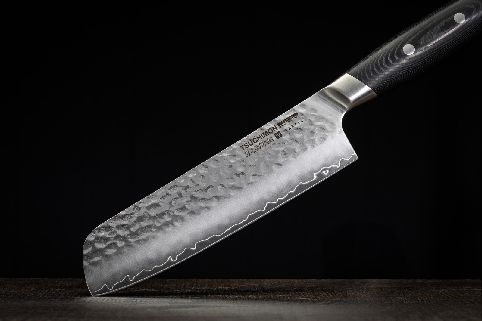 Knivene i Yaxell Tsuchimon-serien har en VG10 rustfri stålkerne, med en super hårdhed på 61 HRC på Rockwell-skalaen. Knivene i serien har tre lag stål med hammermærker på bladets ene side. Skæftet er fremstillet af sort Micarta, som består af bomuldsfibre og harpiks. Fordelen ved dette materiale er, at det giver et greb lige så godt som træ, men uden at blive påvirket af fugt og varme, som træ normalt gør.