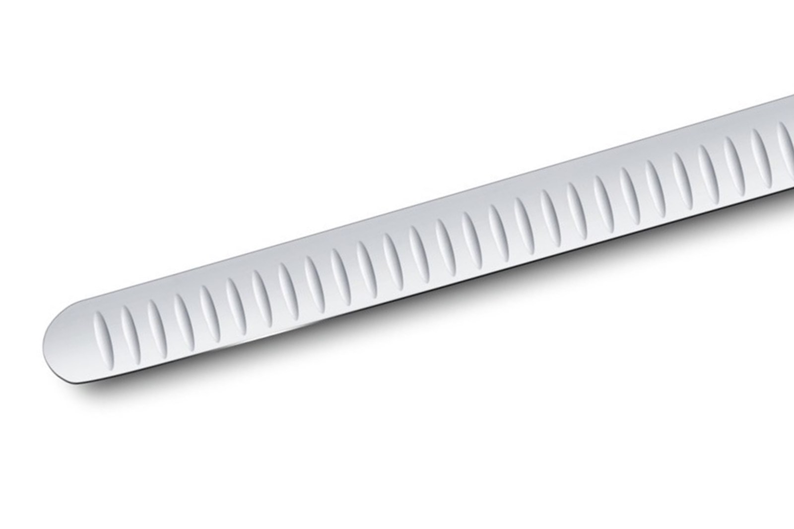 Kniven har luftskær på den ene side af bladet, også kaldet hulslibning, som reducerer overfladespændingen mellem bladet og fødevarerne. Dette sikrer en hurtigere, lettere og mere effektiv skæring.