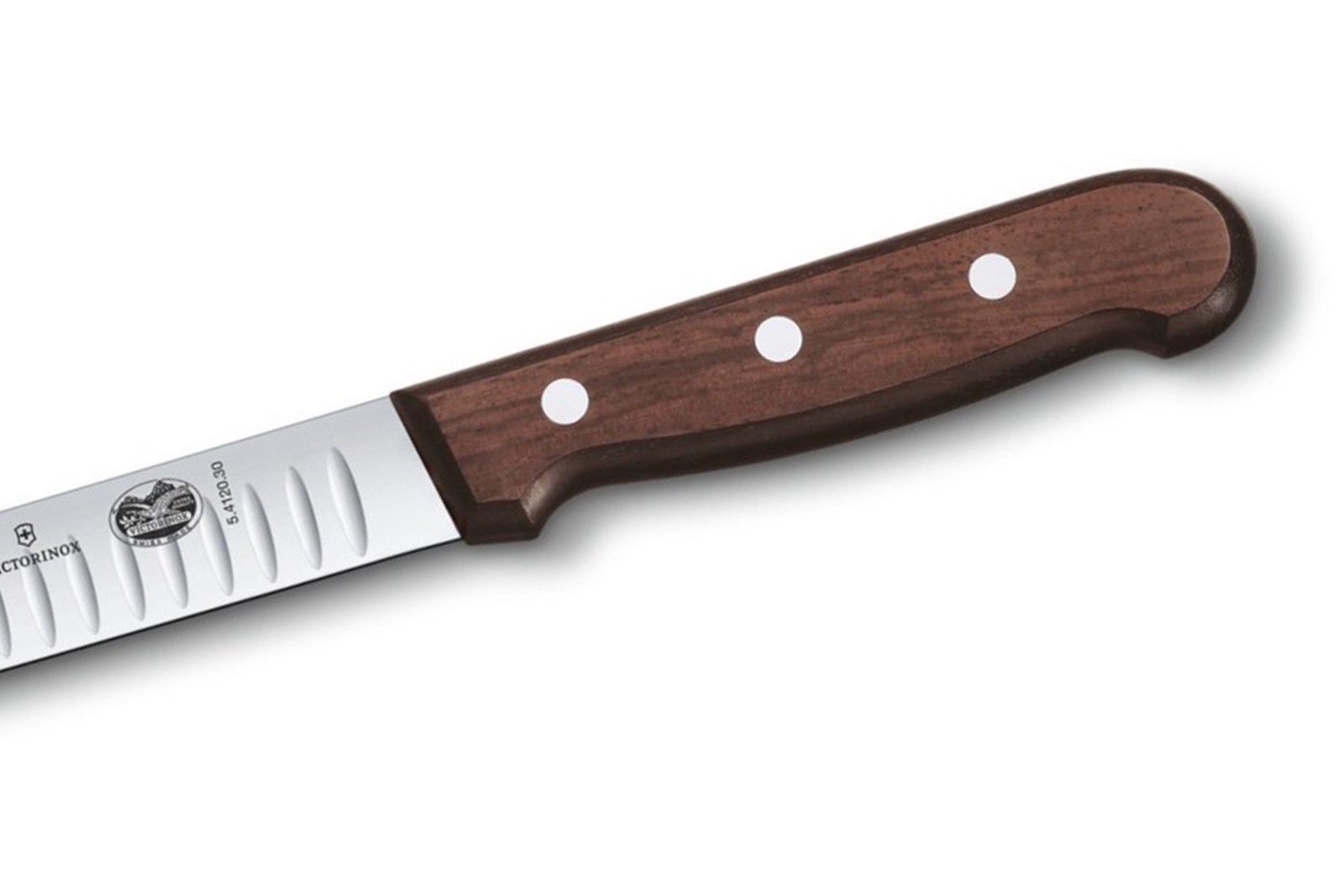 Let og lang laksekniv fra Victorinox med 30 cm knivblad i rustfrit stål og skæfte i ahorntræ.