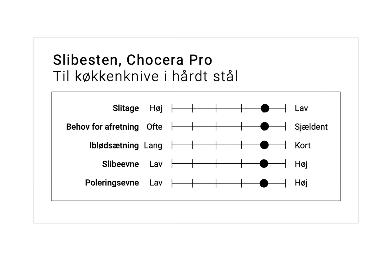 Om serien Naniwa Chocera Pro er topserien fra Naniwa. Stenene i serien er fremstillet med en særlig bindemiddel-teknologi, der giver en hurtig og effektiv slibning med en meget skarp finish. Anbefales til professionelle og erfarne brugere.