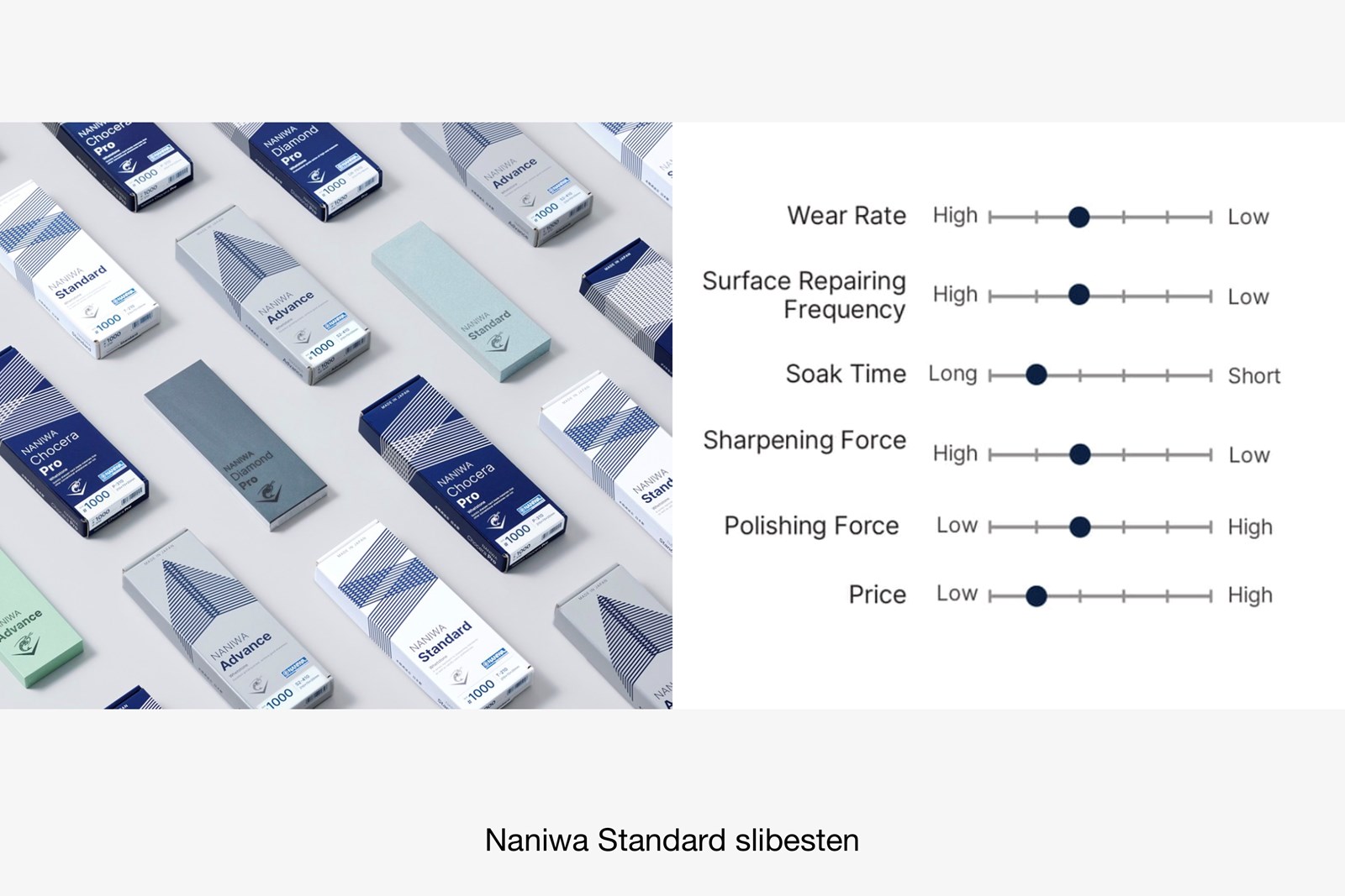 Om serien Naniwa Standard er en serie af slibesten til både begyndere og øvede. Stenene er lette at arbejde med og giver et ensartet resultat. Et godt valg, hvis man vil i gang med vådslibning uden at investere for meget. Vi fører også serierne Naniwa Basic, Advance og Chocera Pro.