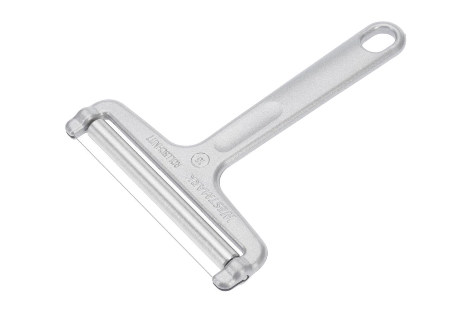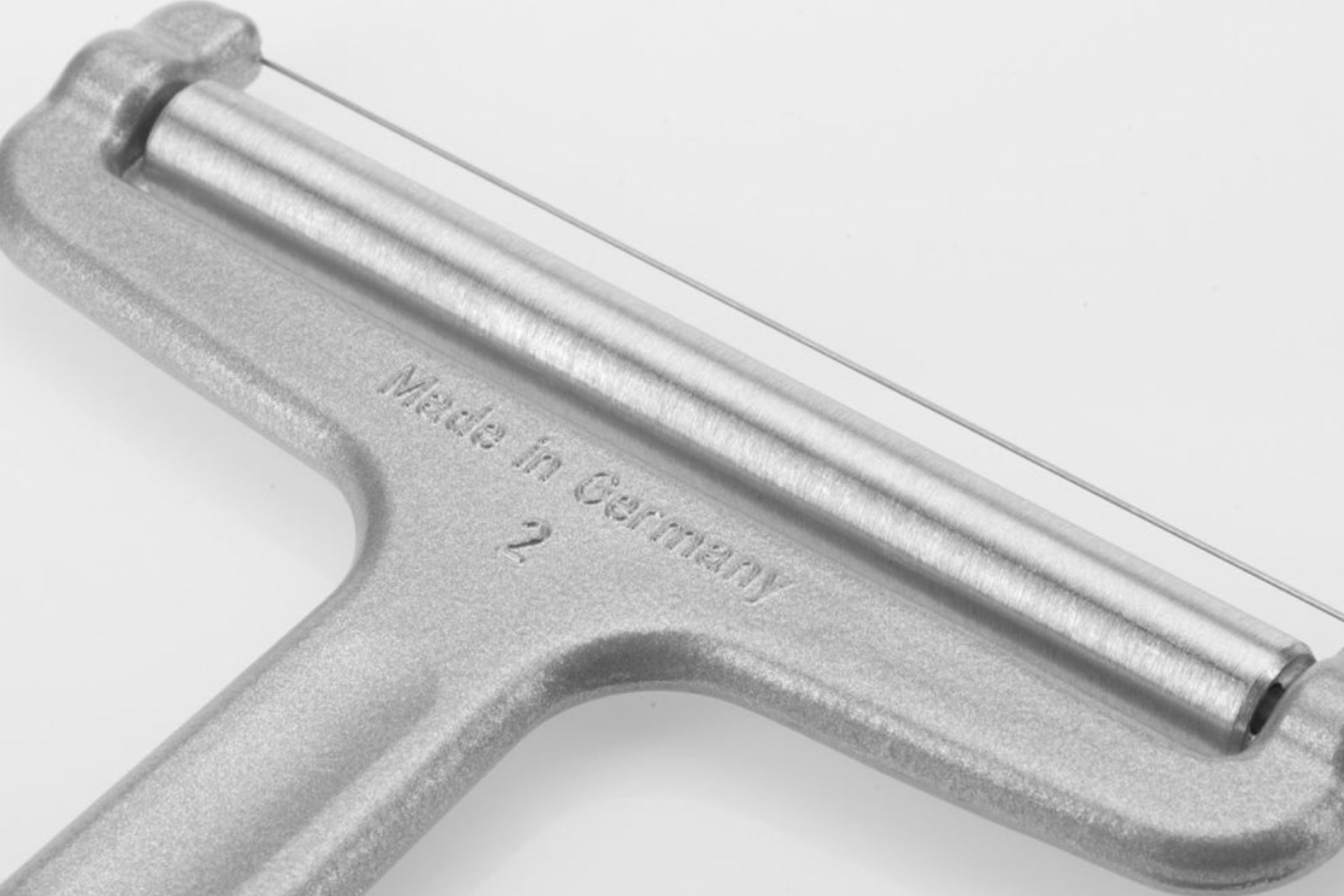 Bemærk: Strengen kan ikke skiftes, hvis den knækker. Så skær kun i blødere oste, og lad være med at fjerne kanterne på osten med Rollschnitt-skæreren, men brug hellere en kniv til dette formål.
