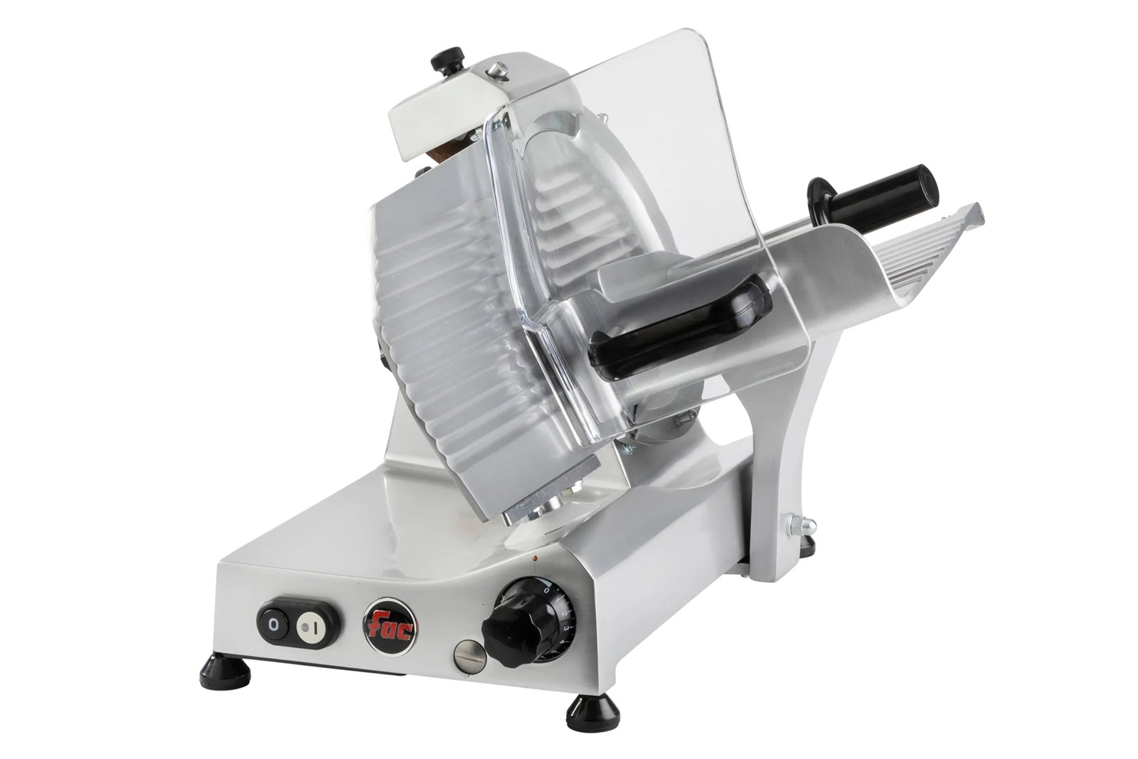 250 E PROF er en professionel pålægsmaskine fra italienske F.A.C., fremstillet af støbt aluminium og udviklet til det krævende private køkken eller mindre erhvervskøkkener. Maskinen er udstyret med en klinge på Ø 25 cm i hærdet stål og leverer stabile, ensartede skiver i en solid konstruktion.