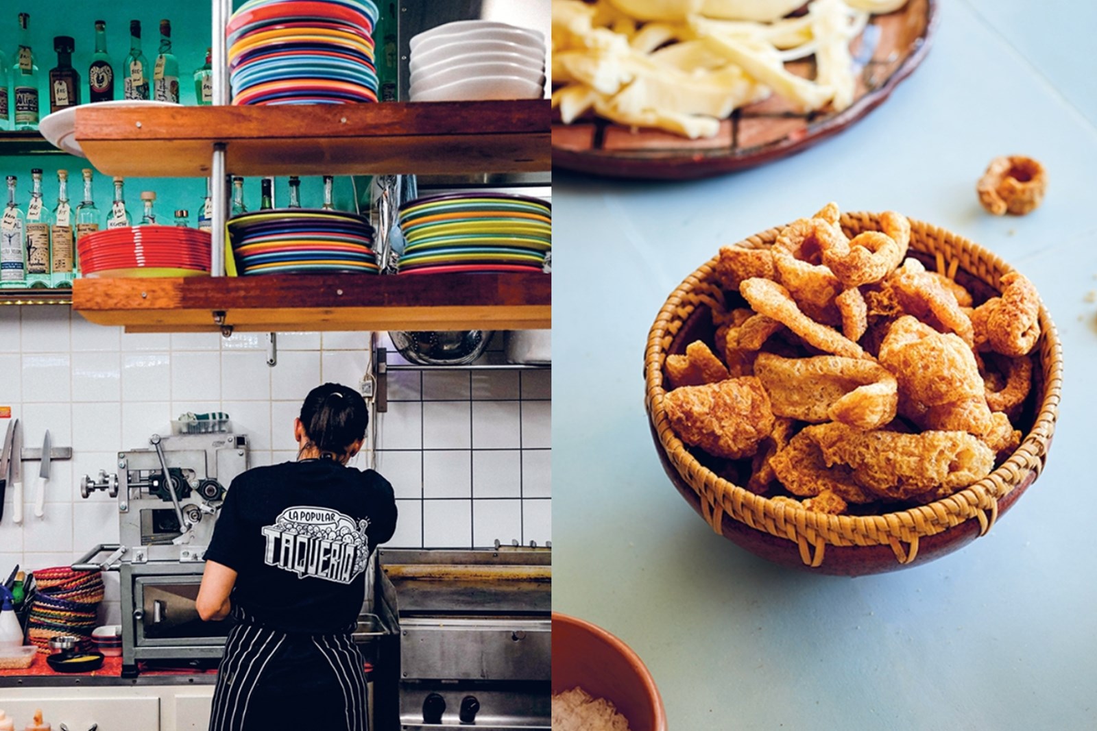 Tacos, tortillas and loaded rolls, including stuffed jalapeño chillies taco, pickled pork skin tostadas, steak and cheese torta