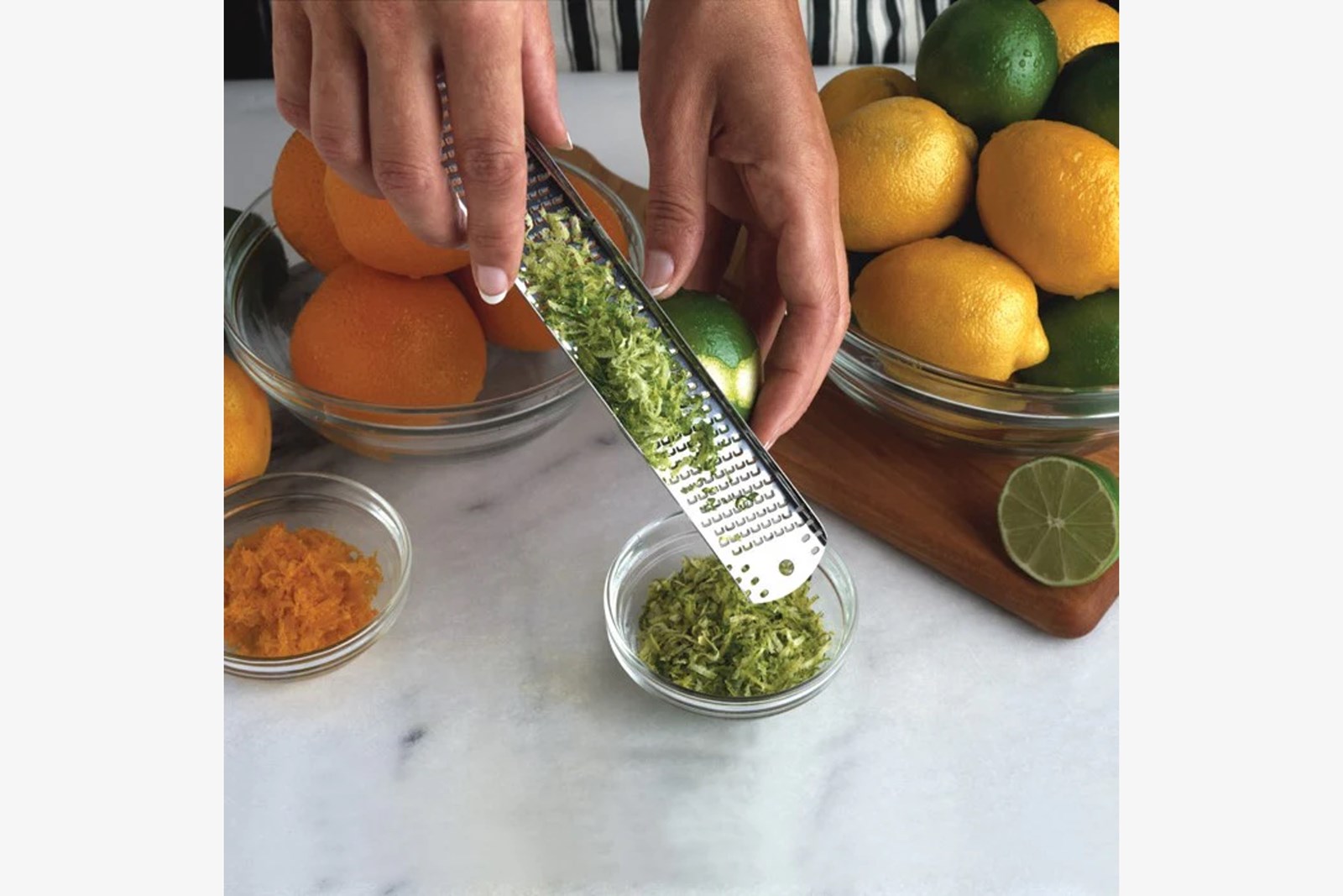 Rivejernet 'Zester' er uden håndtag og med fint skær. Det er velegnet til at rive skallen af appelsin, citron og limefrugt samt glimrende til hvidløg, parmesan og muskatnød.