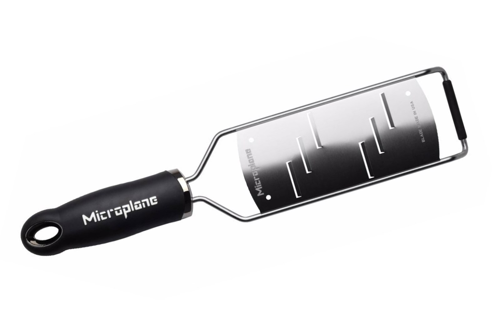 Det brede rivejern 'Large Shaver' er i virkeligheden en stor høvl, som gør det særligt velegnet til at høvle hårde oste, squash, chokolade, agurker, æbler, gulerødder og trøfler.