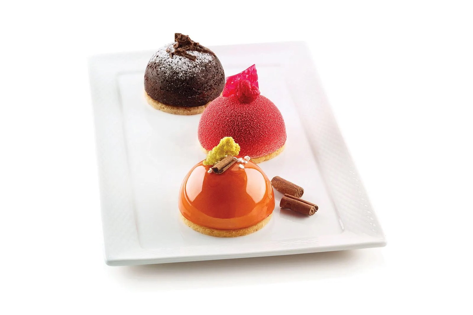 Silikoneform SF003 fra Silikomart med 8 stk. halvkugler til dessert, kage og is.
