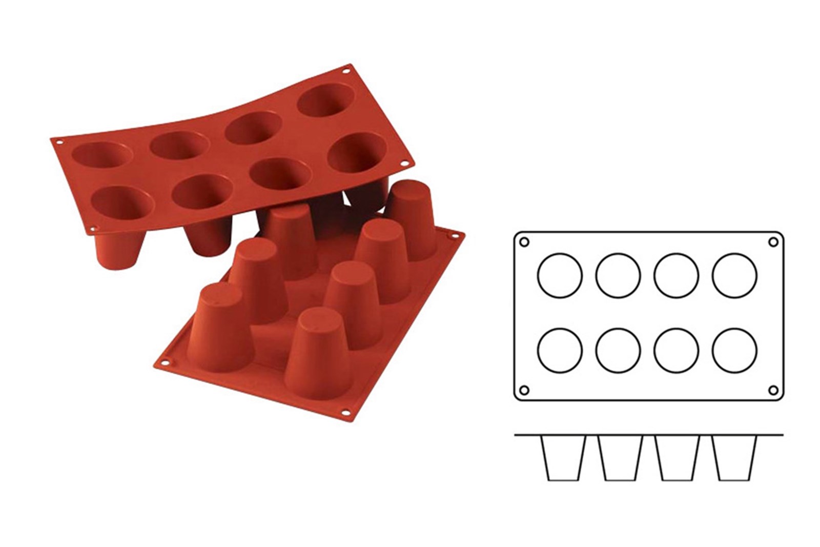 Silikoneform SF021 med 8 fordybninger til runde kager, som f.eks. baba og dariole, desserter eller is.
