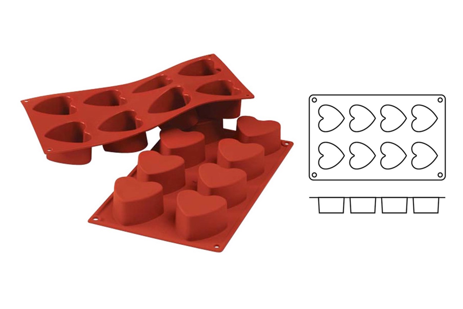 Silikoneform SF040 Heart fra Silikomart med 8 hjerter til dessert, kage og is.