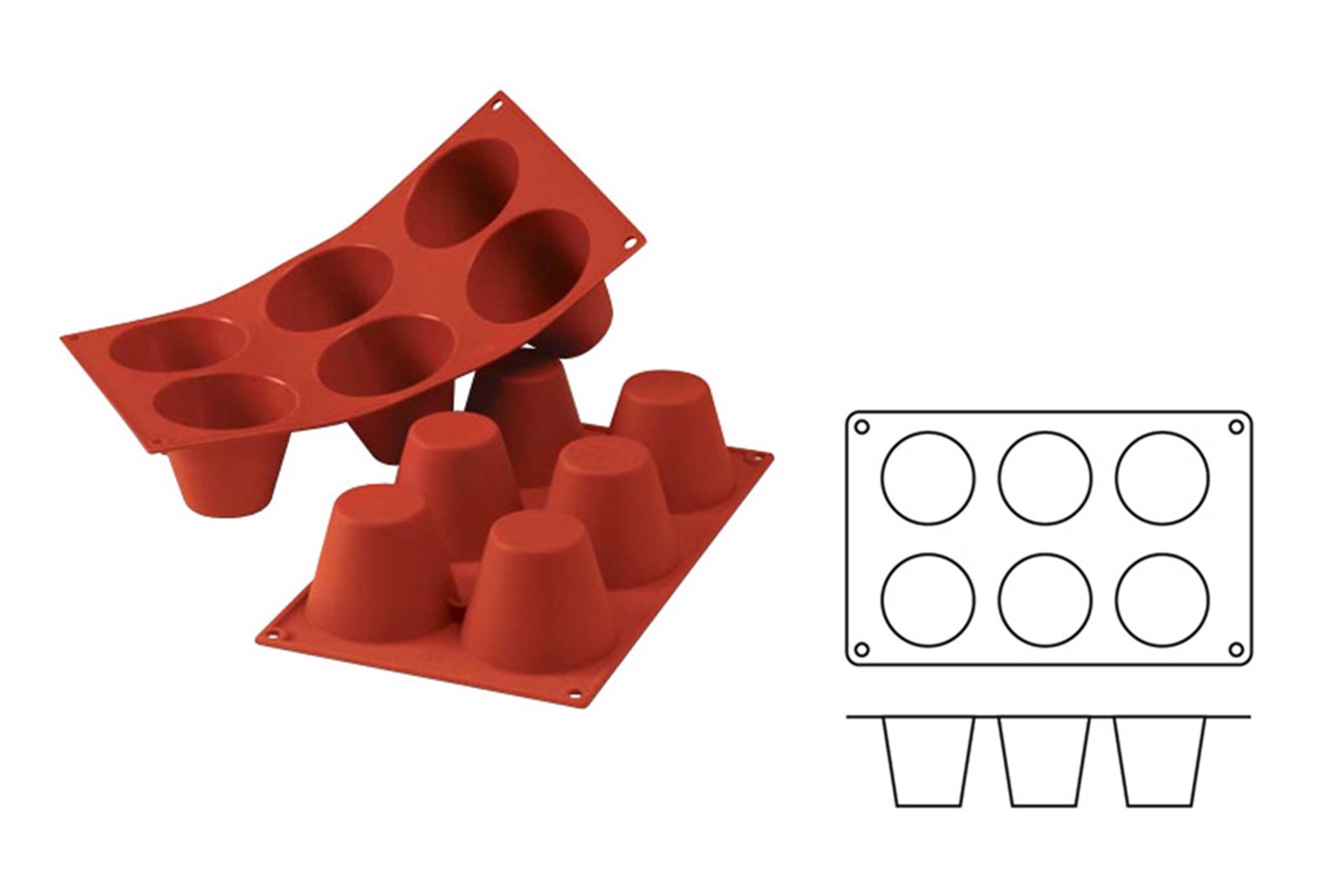 Silikoneform SF052 med 6 fordybninger til runde kager som f.eks. baba og dariole, desserter eller is.