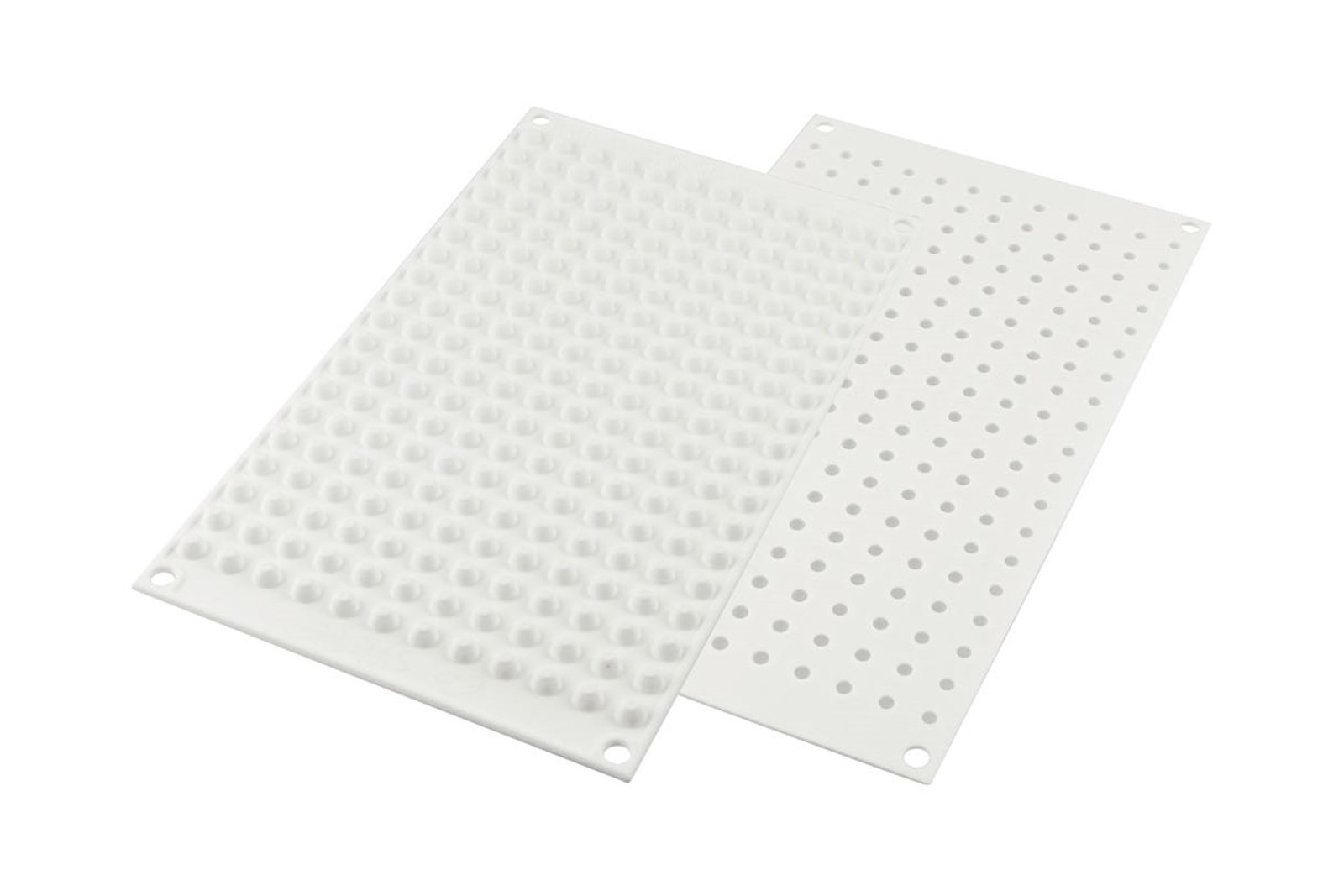 Med silikoneformen Mini Pearl kan du fremstille 228 små perler af chokolade, sukker eller hvad du nu kan finde på. Perlerne kan f.eks. bruges til dekoration af kager og desserter.