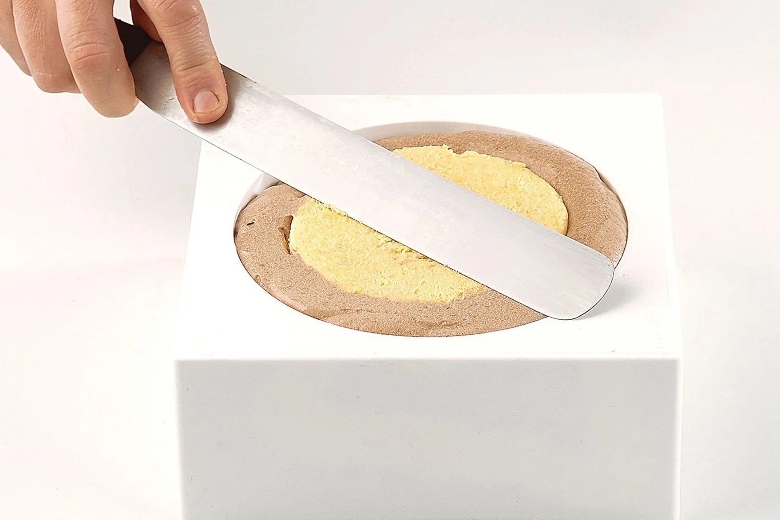 Da silikoneformen er blød, fraråder vi at støbe chokolade i den. Størknet chokolade kan let knække, og lufthuller kan ikke bankes ud af massen. Brug i stedet en rigtig chokoladeform i hård plast.
