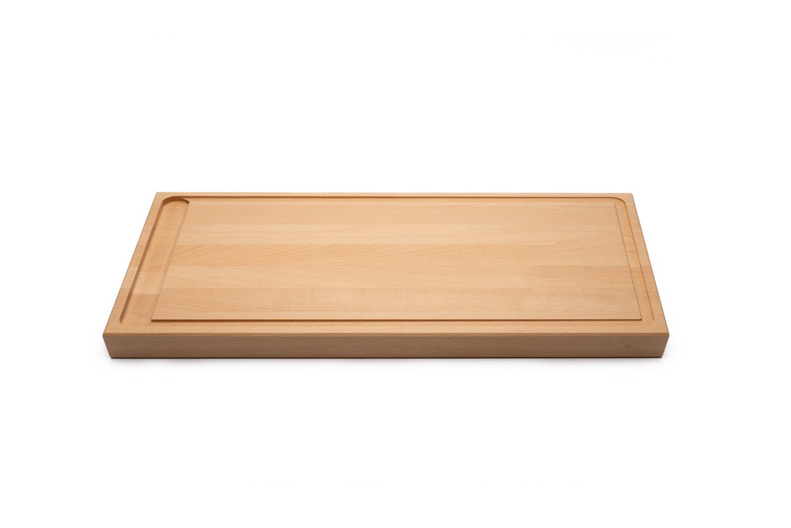 Fremstillet af ovntørret, stavlimet bøgetræ i 4 cm tykkelse. Stavlimningen reducerer spændinger i træet og bidrager til øget formstabilitet. Brættet er forsynet med en indfræset rille langs kanten, der leder væske ned i et integreret kar. Konstruktionen gør brættet særligt velegnet til råvarer, der afgiver saft under udskæring.