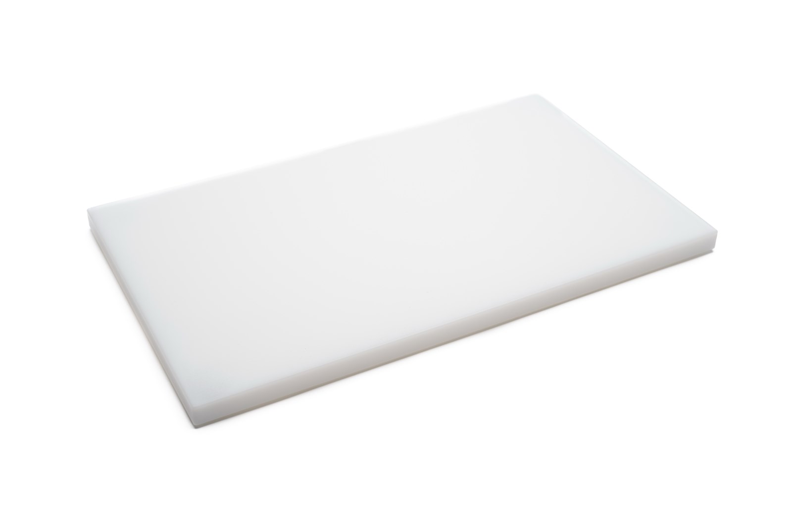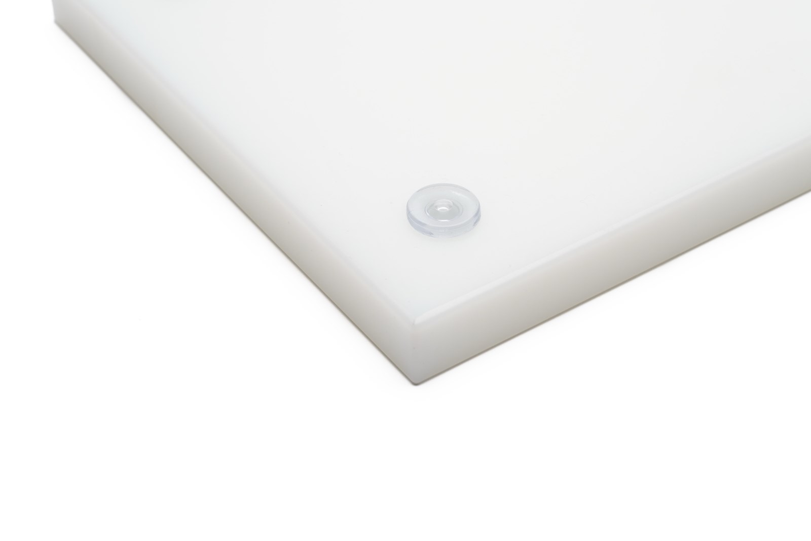 Fremstillet af massiv PE-plast med afbalanceret hårdhed. Materialet giver stabilitet under skæring uden at være unødigt hårdt mod knivens æg. Overfladen danner synlige skærespor ved brug; disse forbliver åbne og kan rengøres grundigt. Plastfødderne er monteret for at sikre stabilitet mod underlaget.