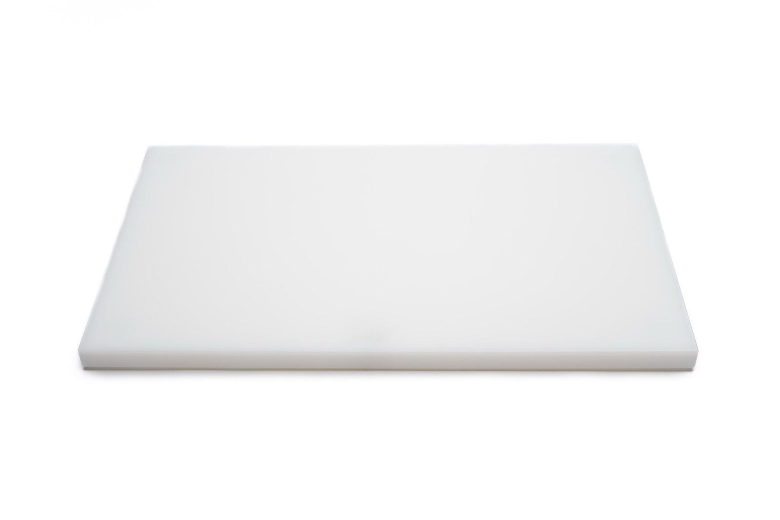 Skærebræt på 50 × 30 cm i hvid, fødevaregodkendt PE-plast (polyethylen), 2 cm tykt og med plastfødder. Den massive konstruktion giver høj stabilitet, og fødderne sikrer fast placering under arbejdet. Den hvide farve giver høj visuel kontrast og gør snavs og rester lette at opdage.