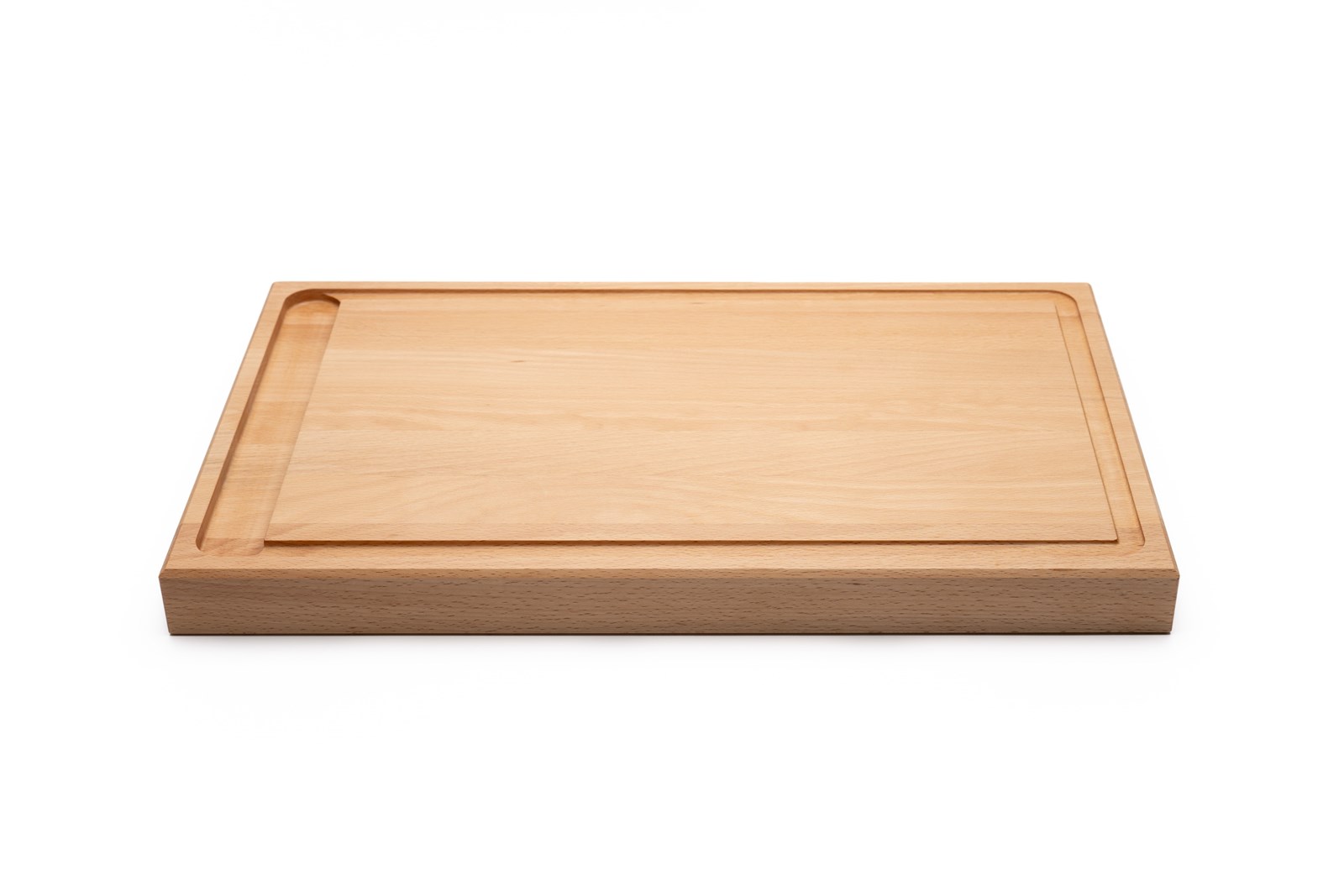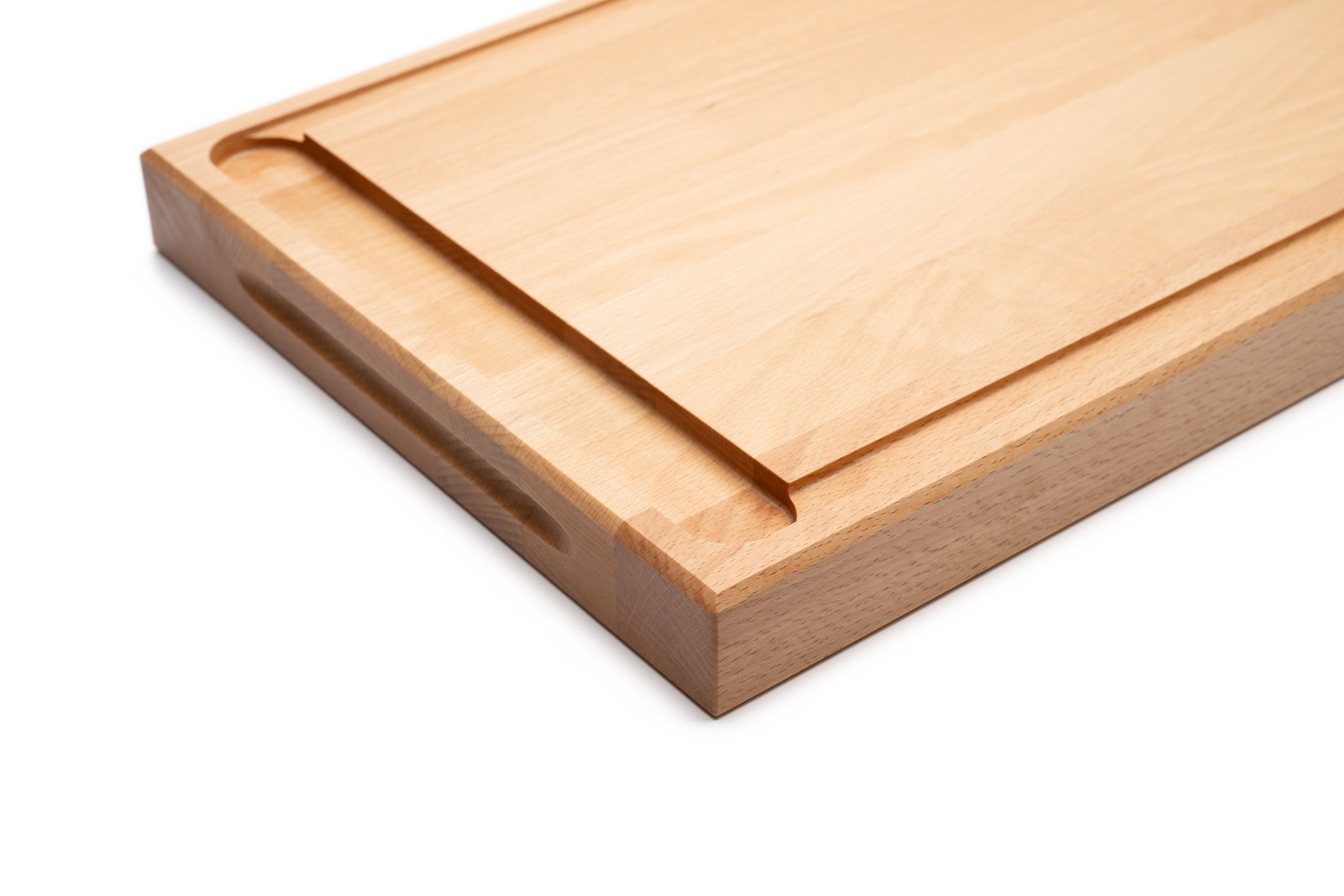 Fremstillet af ovntørret, stavlimet bøgetræ i 4 cm tykkelse. Stavlimningen reducerer spændinger i træet og bidrager til øget formstabilitet. Brættet er forsynet med en indfræset rille langs kanten, der leder væske ned i et integreret kar. Konstruktionen gør brættet særligt velegnet til råvarer, der afgiver saft under udskæring.