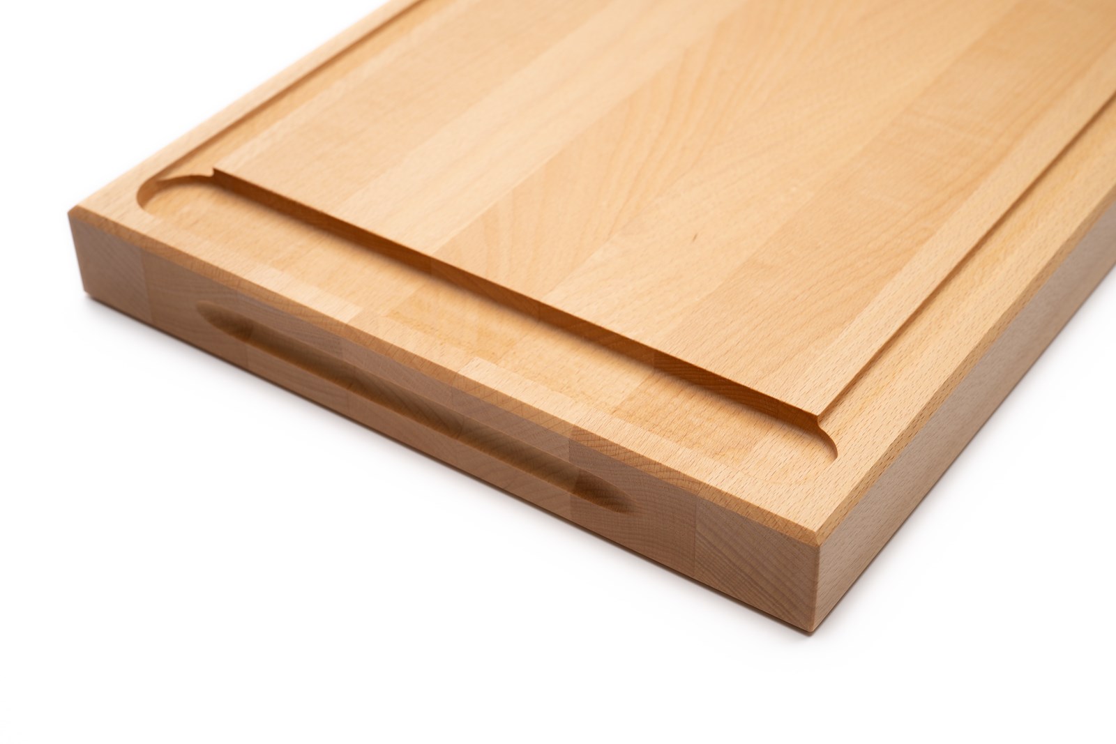 Fremstillet af ovntørret, stavlimet bøgetræ i 4 cm tykkelse. Stavlimningen reducerer spændinger i træet og bidrager til øget formstabilitet. Brættet er forsynet med en indfræset rille langs kanten, der leder væske ned i et integreret kar. Konstruktionen gør brættet særligt velegnet til råvarer, der afgiver saft under udskæring.
