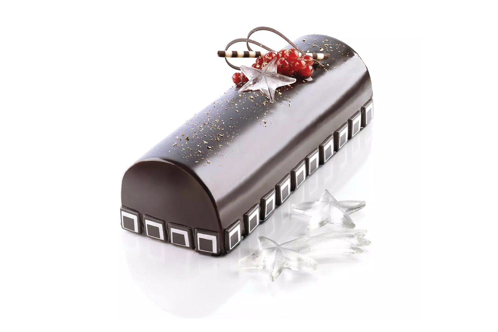 Silikomart Bûche tagrendeform i silikone, der kan anvendes både med og uden reliefmåtte, til kager med og uden mønster.