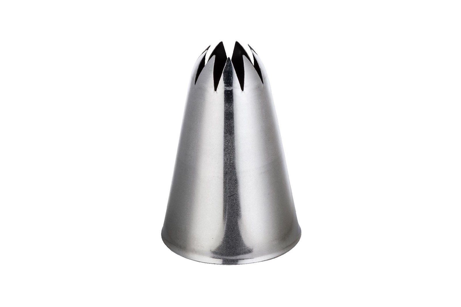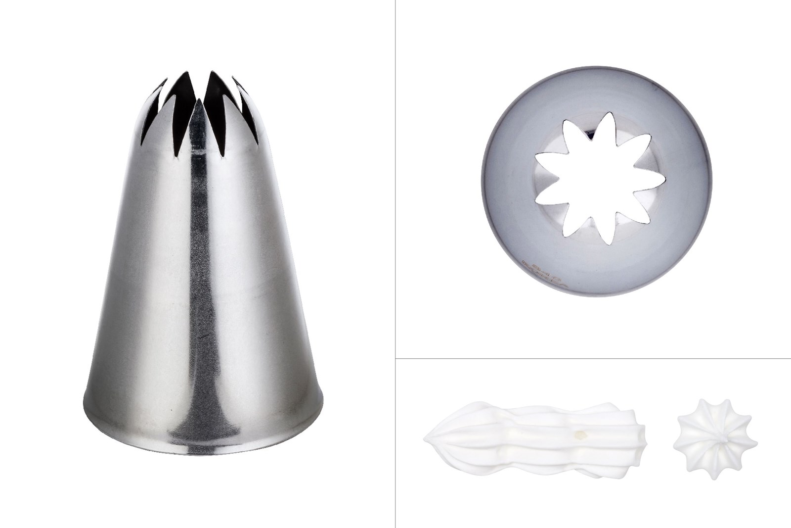 Den lukkede tandform skaber mere tekstur og dybde i mønstret end en almindelig stjernetylle. Egner sig ikke til masser med stykker eller kerner, da disse kan tilstoppe åbningen.