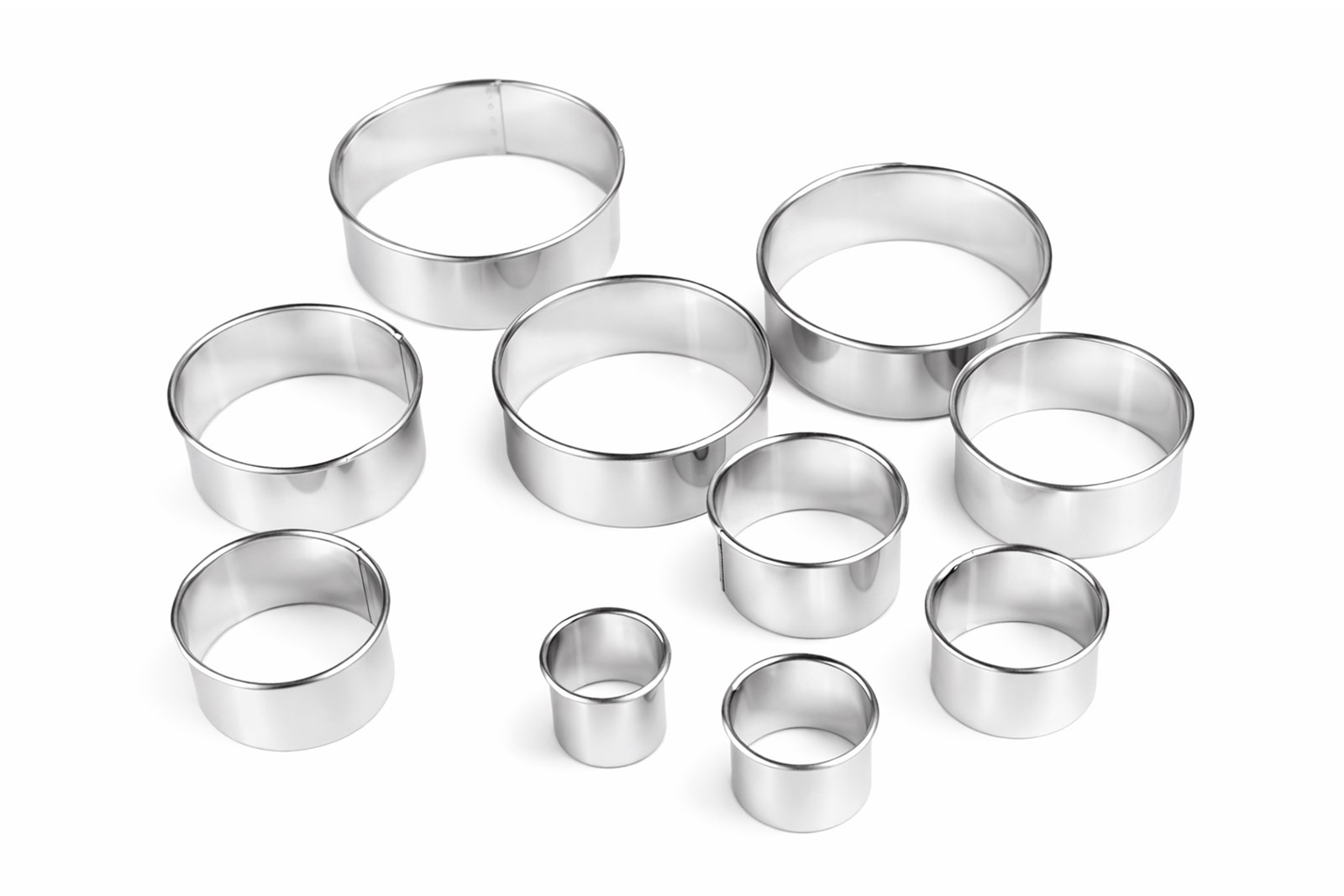 Rund udstikker i hvidblik (tinblik), Ø 1,9–13,5 cm.